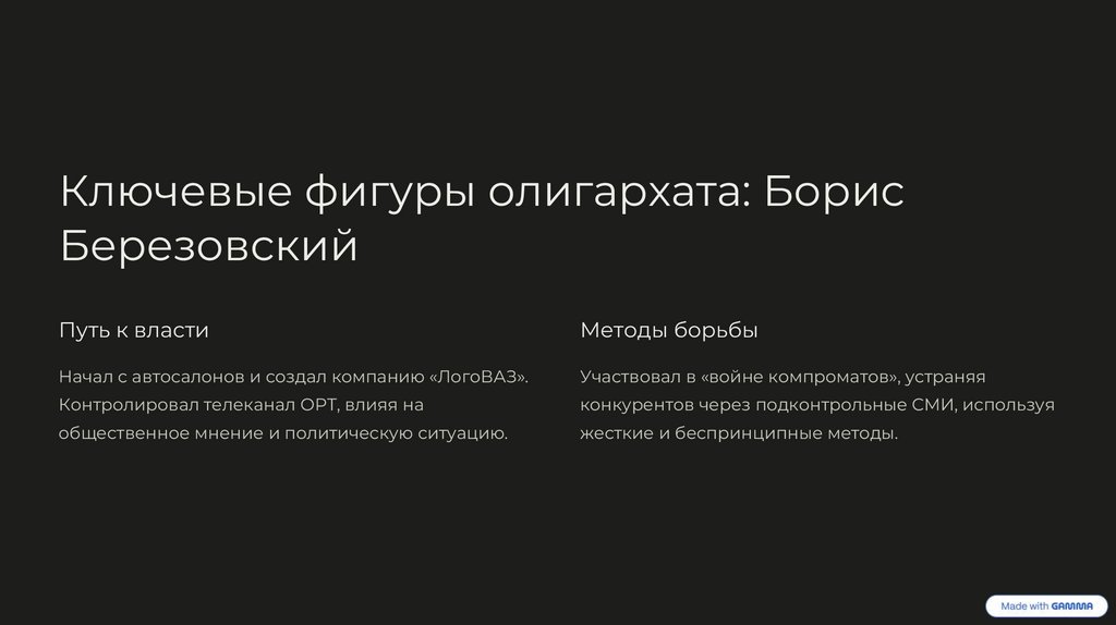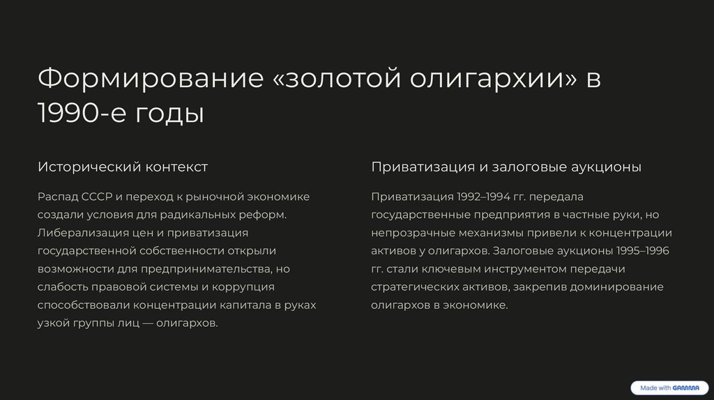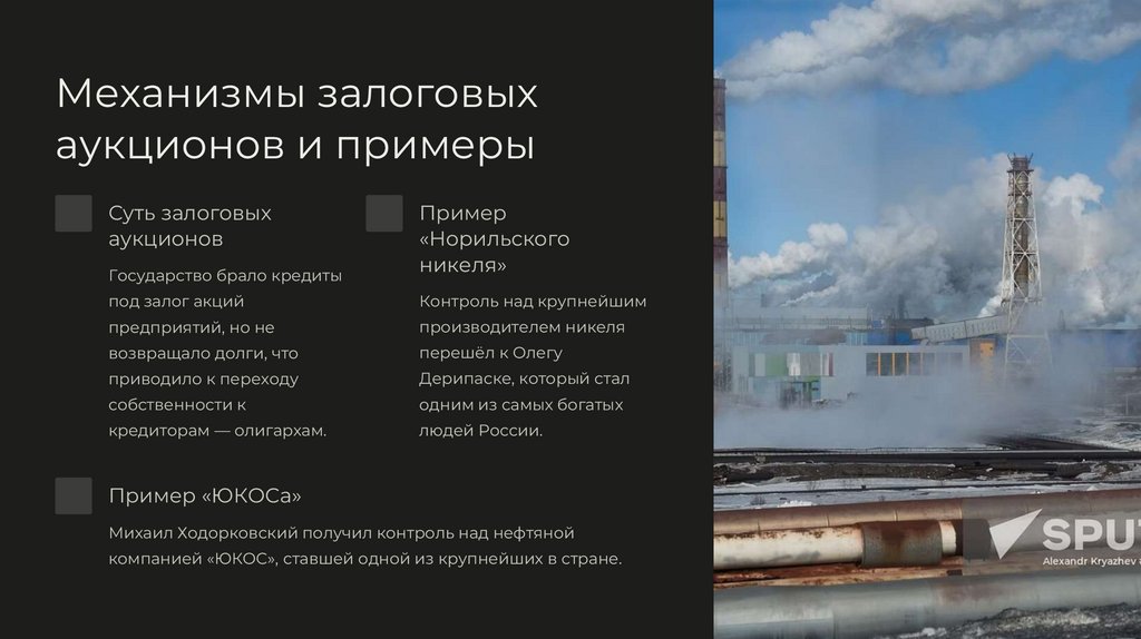 олигархии», чьё влияние сохраняется и сегодня. Залоговые