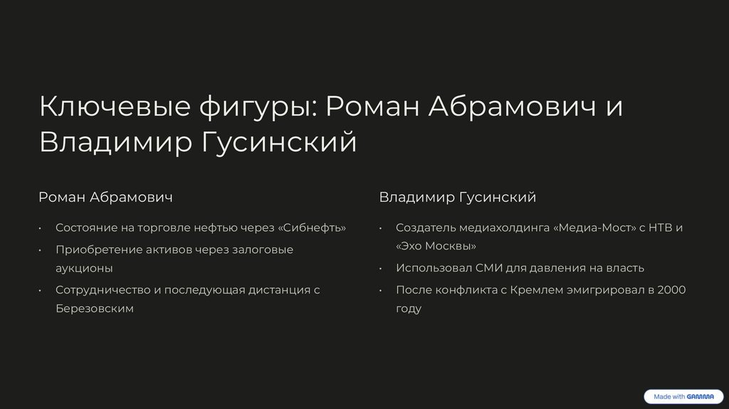 Ключевые фигуры: Роман Абрамович иВладимир Гусинский