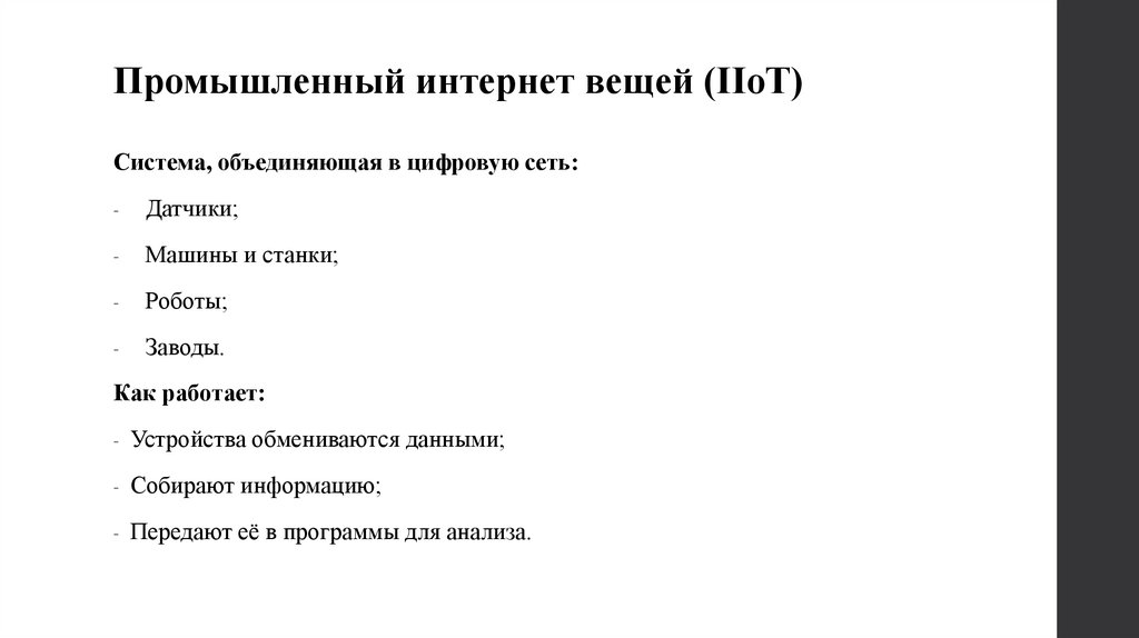 Промышленный интернет вещей (IIoT)Система, объединяющая в цифровую сеть: