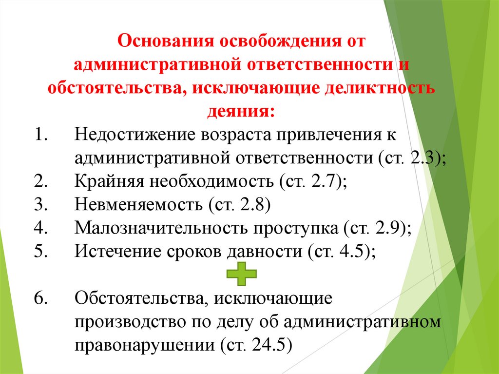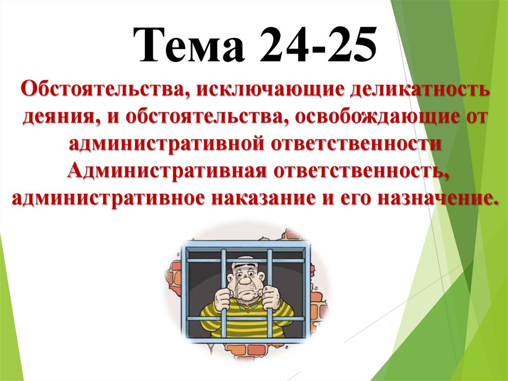 Обстоятельства, исключающие деликатность деяния, и обстоятельства, освобождающие от административной ответственности. Тема 24-25