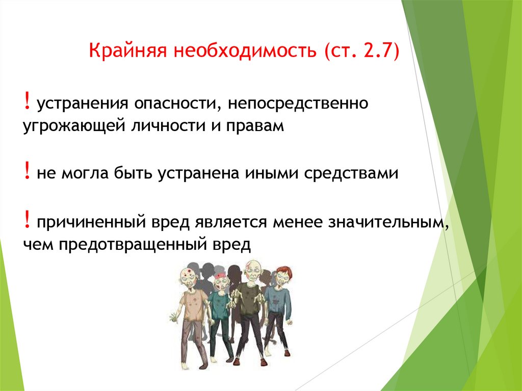 Крайняя необходимость (ст. 2.7)! устранения опасности, непосредственно