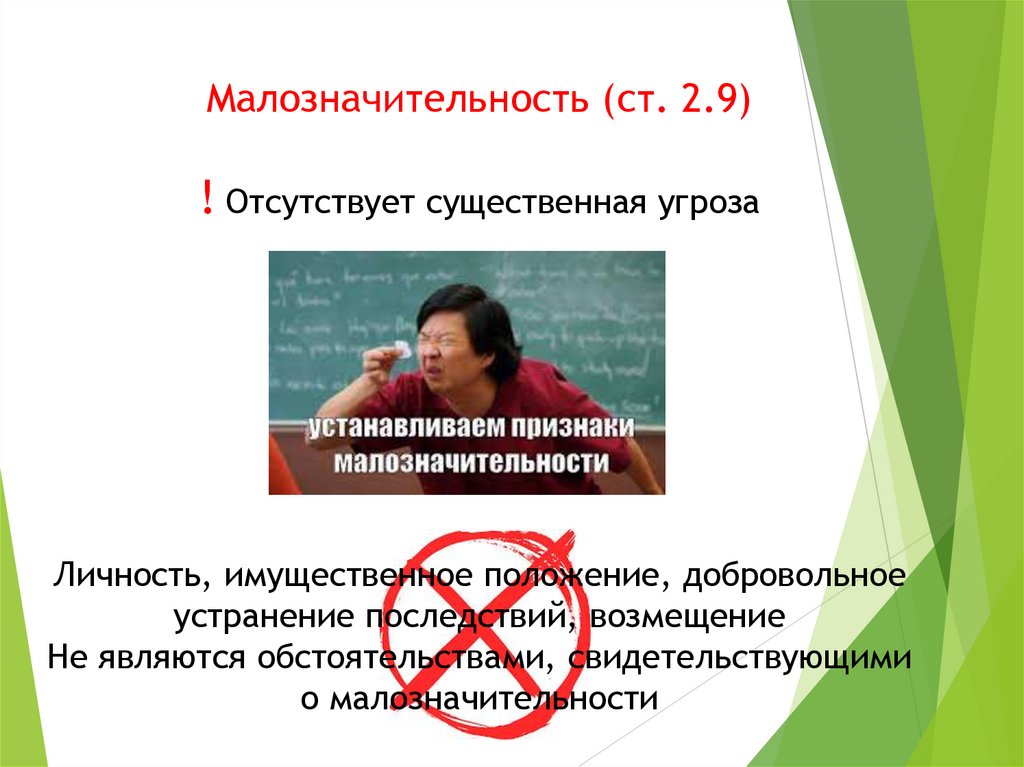 Малозначительность (ст. 2.9)! Отсутствует существенная угроза