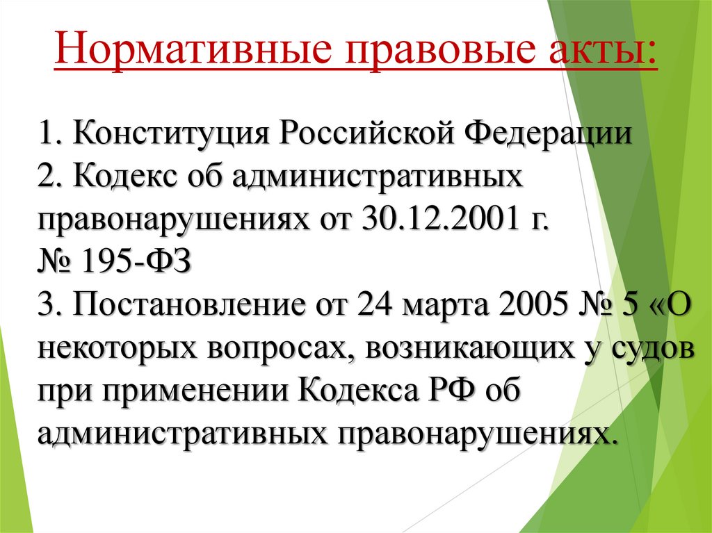 Нормативные правовые акты:1. Конституция Российской Федерации