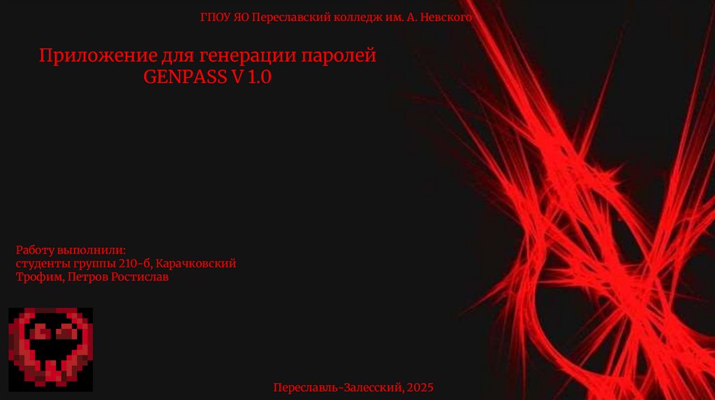 ГПОУ ЯО Переславский колледж им. А. НевскогоПриложение для генерации паролей