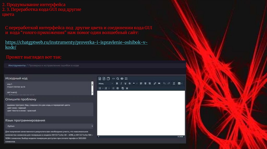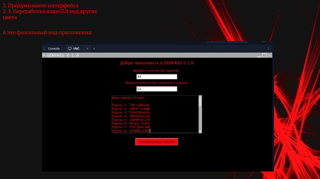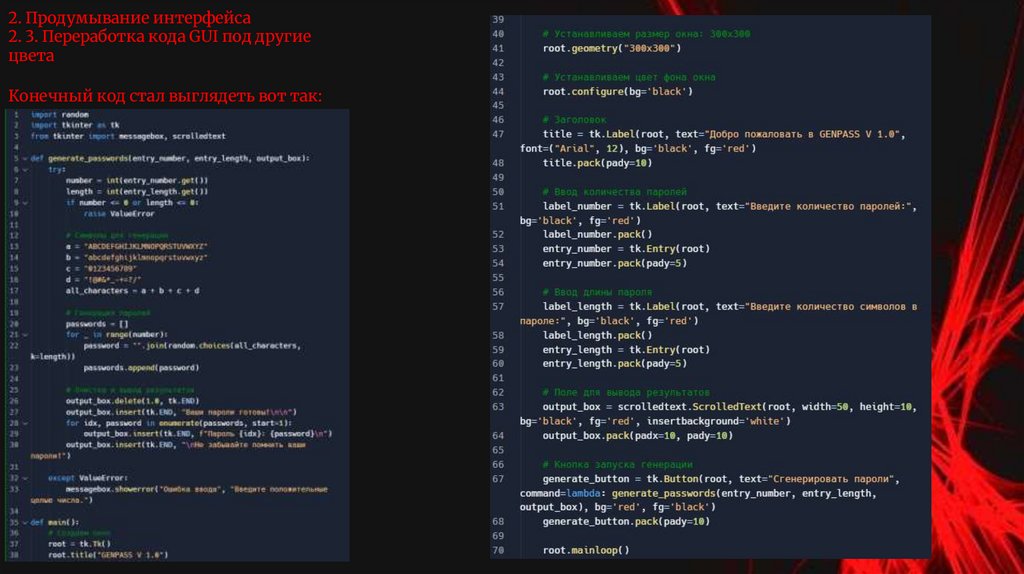 2. Продумывание интерфейса2. 3. Переработка кода GUI под другие