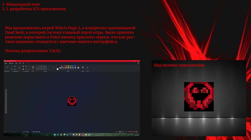 решение нарисовать в Paint иконку красного черепа, что как разтаки идеально стыкуется с цветами нашего интерфейса.