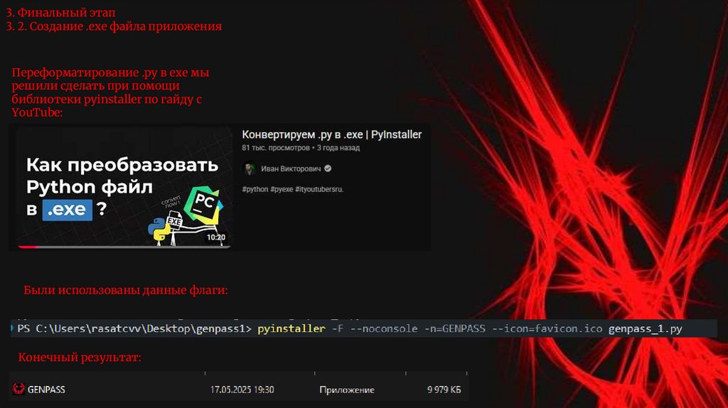3. Финальный этап3. 2. Создание .exe файла приложения