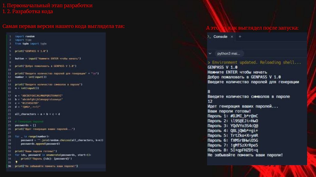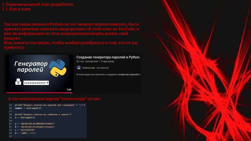 1. Первоначальный этап разработки1. 2. Разработка кода