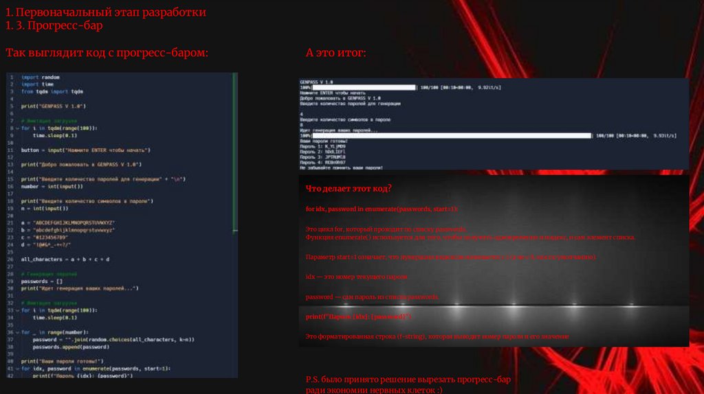 Это форматированная строка (f-string), которая выводит номер пароля и его значение