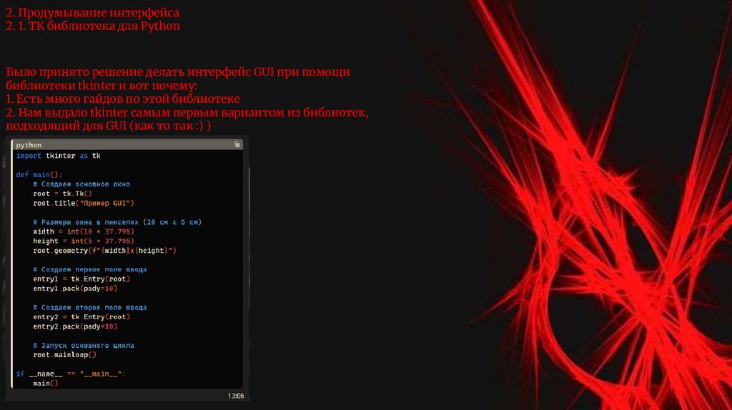2. Продумывание интерфейса2. 1. TK библиотека для Python