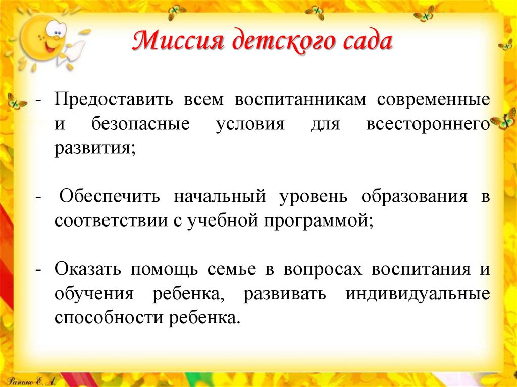 - Предоставить всем воспитанникам современныеи безопасные условия для всестороннего