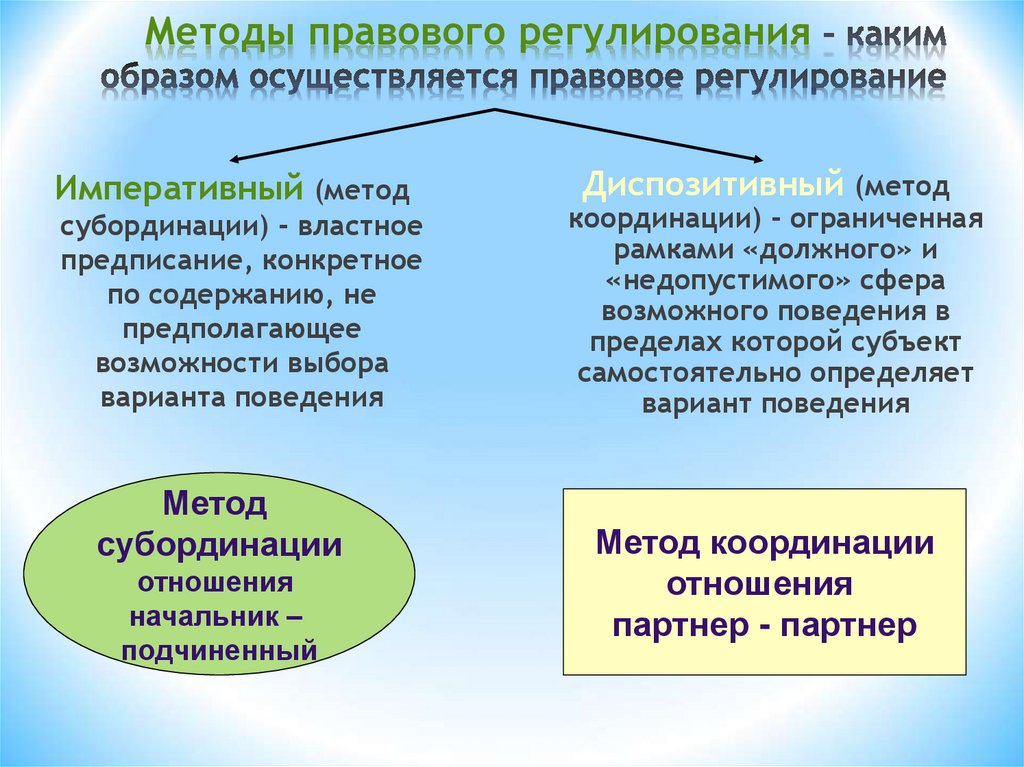 23. Методы правового регулирования – каким образом осуществляется правовое регулирование