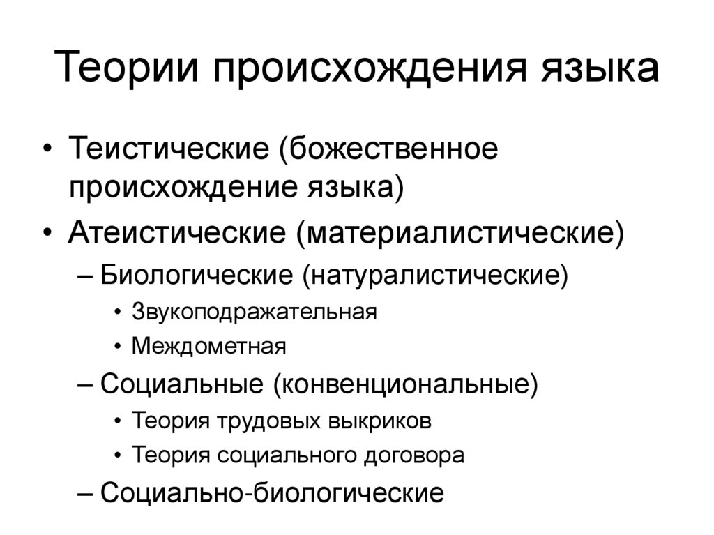 • Теистические (божественноепроисхождение языка)