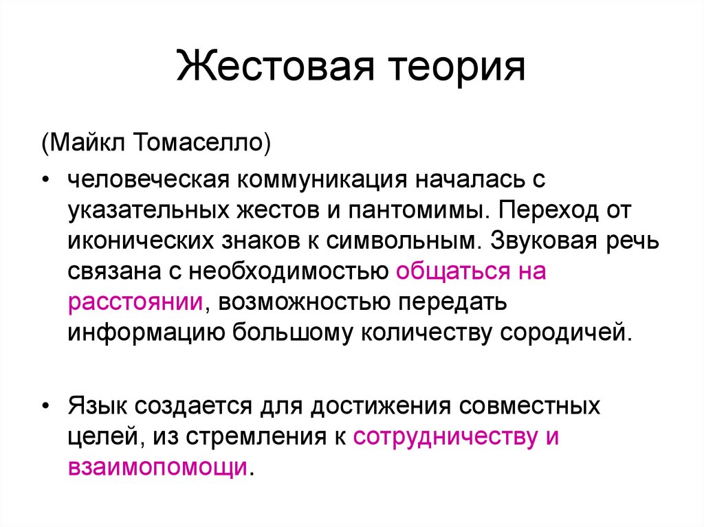 (Майкл Томаселло)• человеческая коммуникация началась с