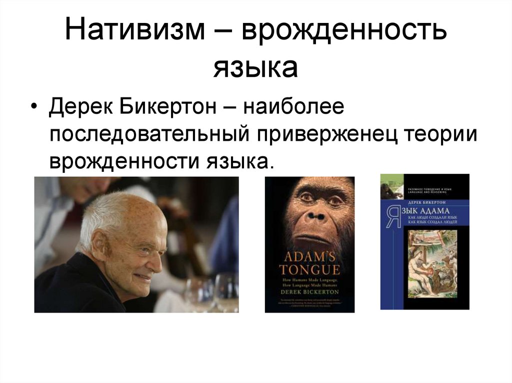 • Дерек Бикертон – наиболеепоследовательный приверженец теории