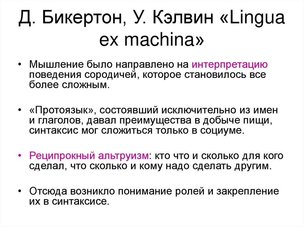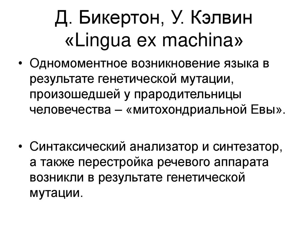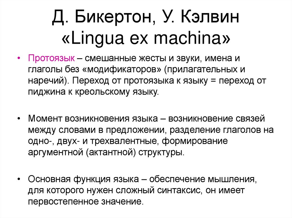 18. Д. Бикертон, У. Кэлвин «Lingua ex machina»
