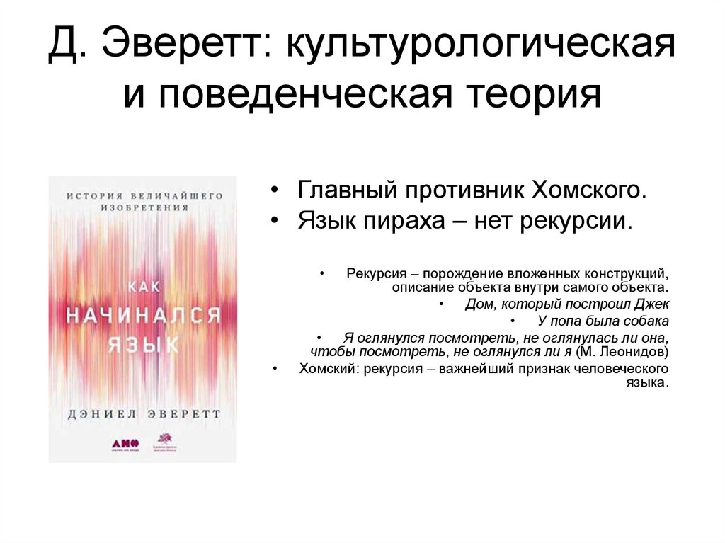 • D. Everett. How Language Began: The History of Humanity’s