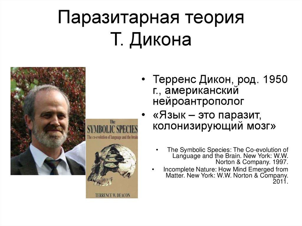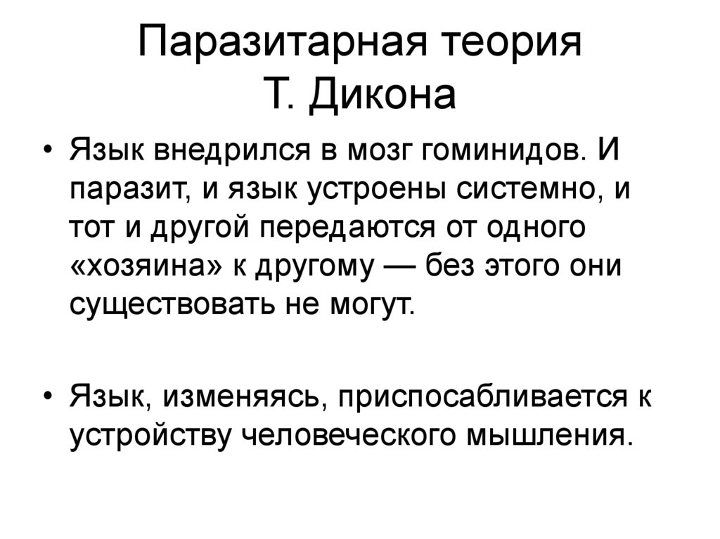• Язык внедрился в мозг гоминидов. Ипаразит, и язык устроены системно, и