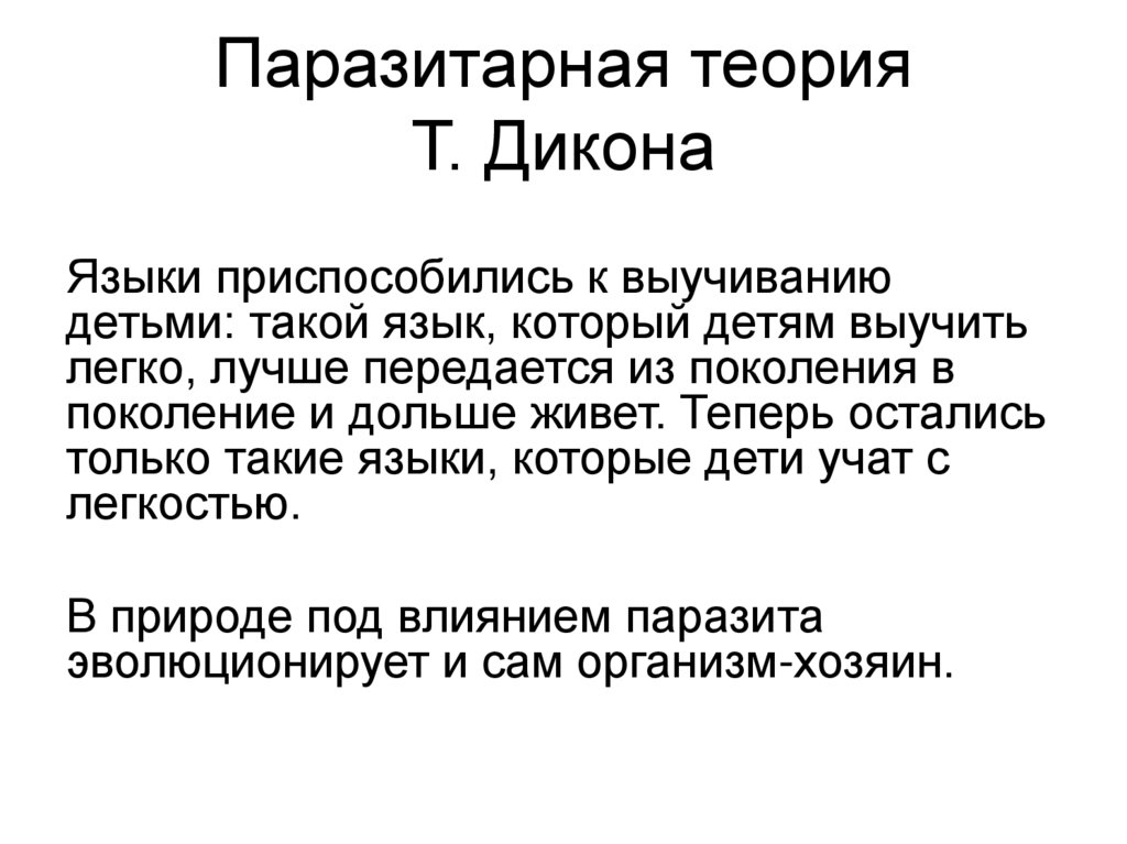 45. Паразитарная теория Т. Дикона