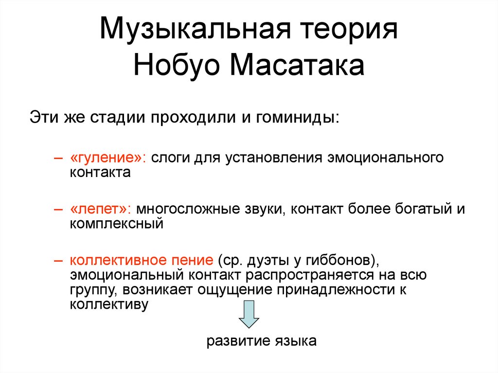 Эти же стадии проходили и гоминиды:– «гуление»: слоги для установления эмоционального