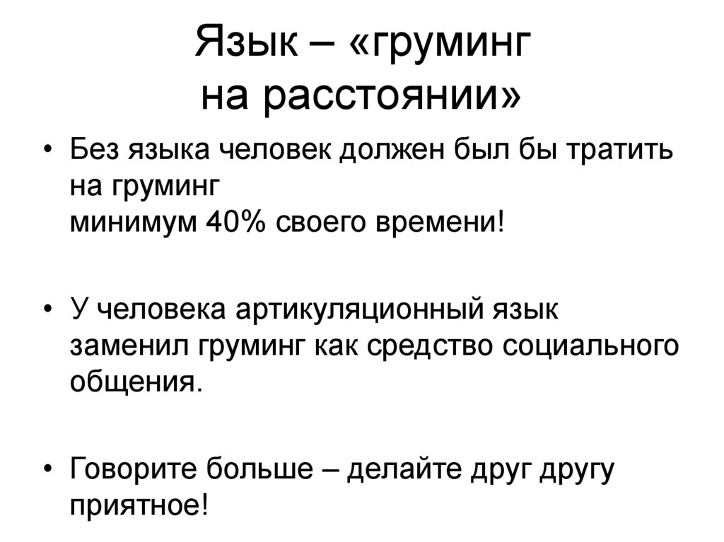 • Без языка человек должен был бы тратитьна груминг