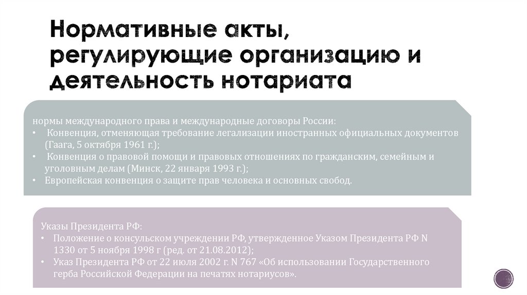 6. Нормативные акты, регулирующие организацию и деятельность нотариата