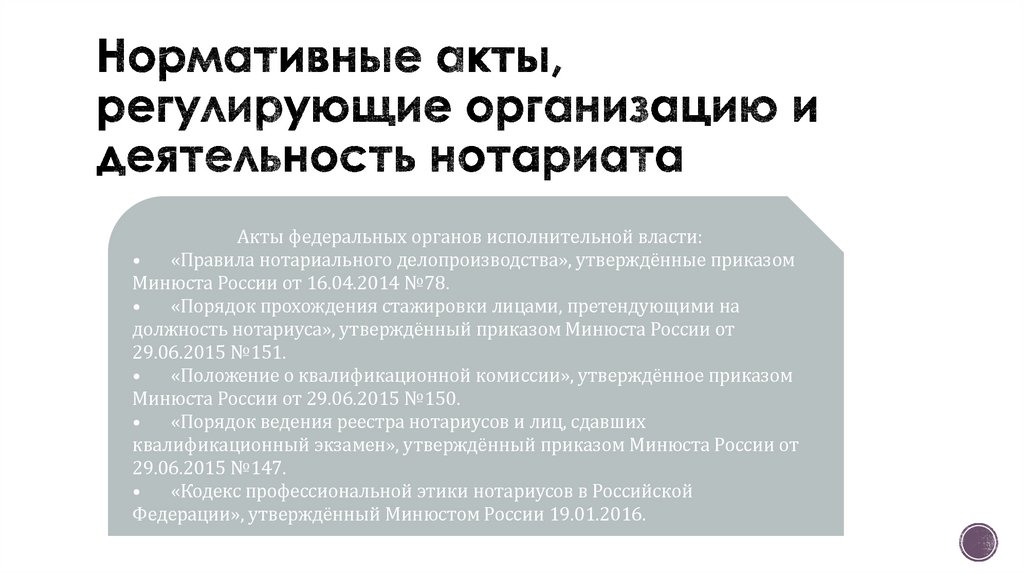 4. Нормативные акты, регулирующие организацию и деятельность нотариата