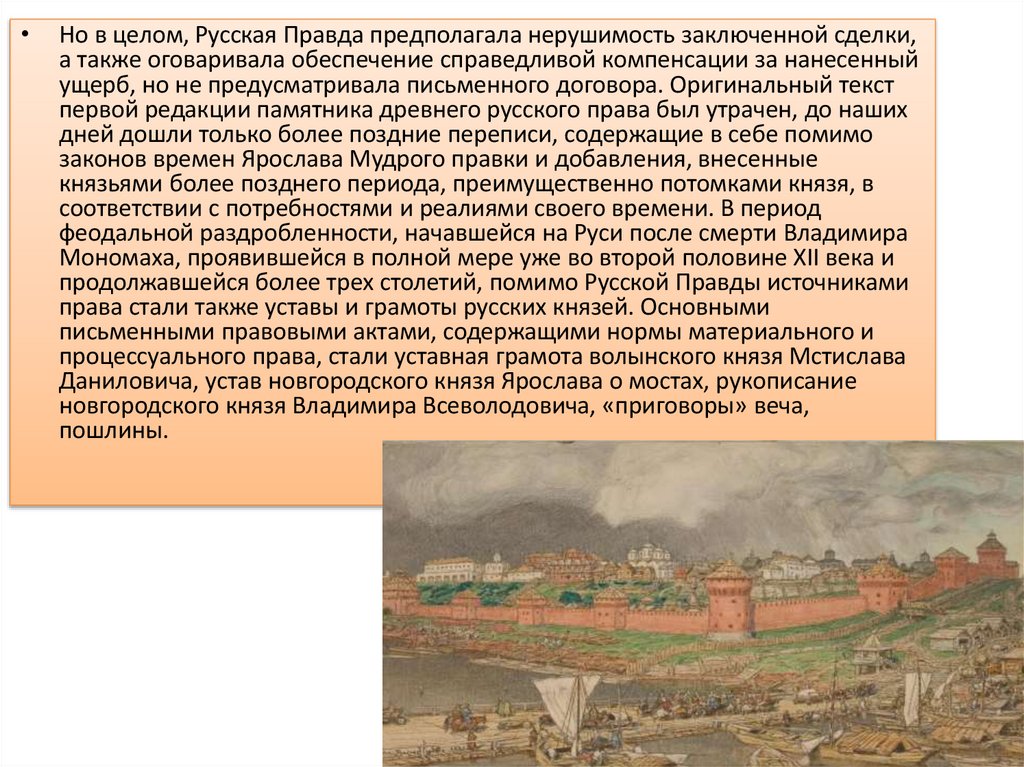 Но в целом, Русская Правда предполагала нерушимость заключенной сделки,