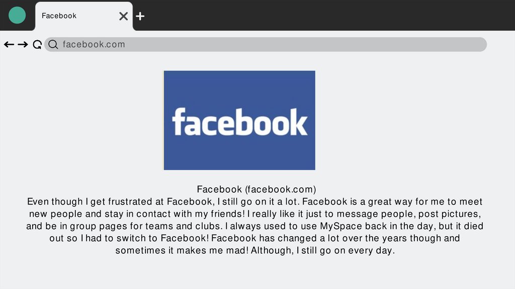 Even though I get frustrated at Facebook, I still go on it a lot. Facebook is a great way for me to meet
