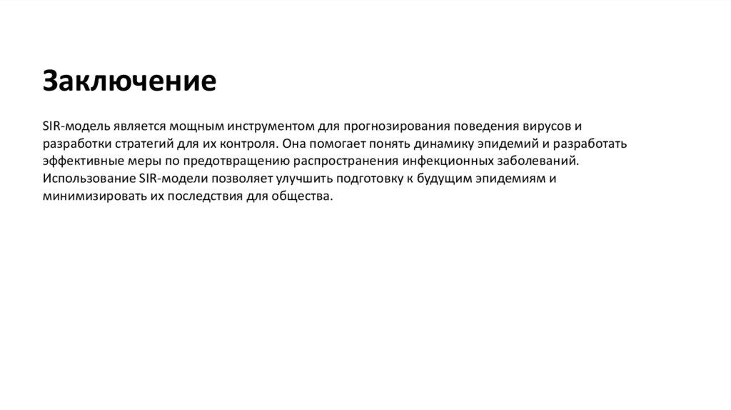 ЗаключениеSIR-модель является мощным инструментом для прогнозирования поведения вирусов и