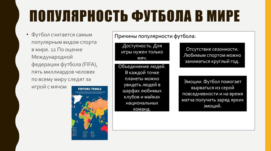 ПОПУЛЯРНОСТЬ ФУТБОЛА В МИРЕ• Футбол считается самым