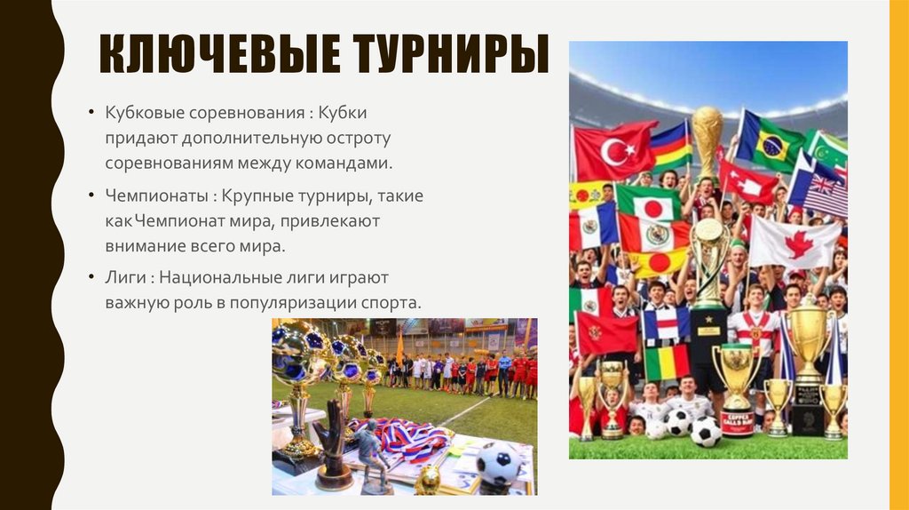 • Чемпионаты : Крупные турниры, такие