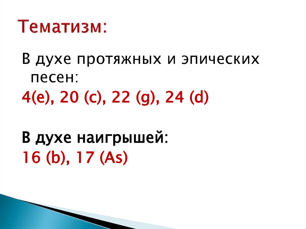 Тема в духе русской протяжной песниВ проведениях темы натуральные