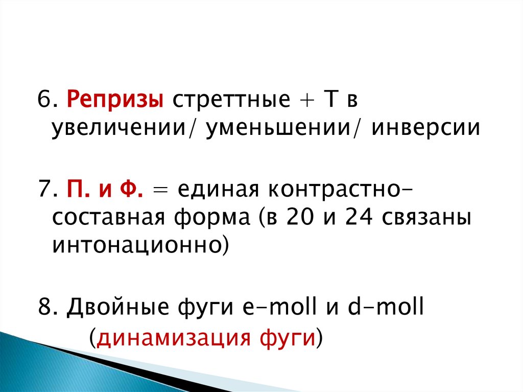 7. П. и Ф. = единая контрастносоставная форма (в 20 и 24 связаны