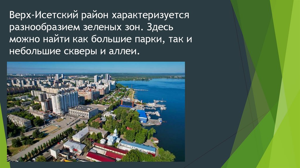 6. Верх-Исетский район характеризуется разнообразием зеленых зон. Здесь можно найти как большие парки, так и небольшие скверы и