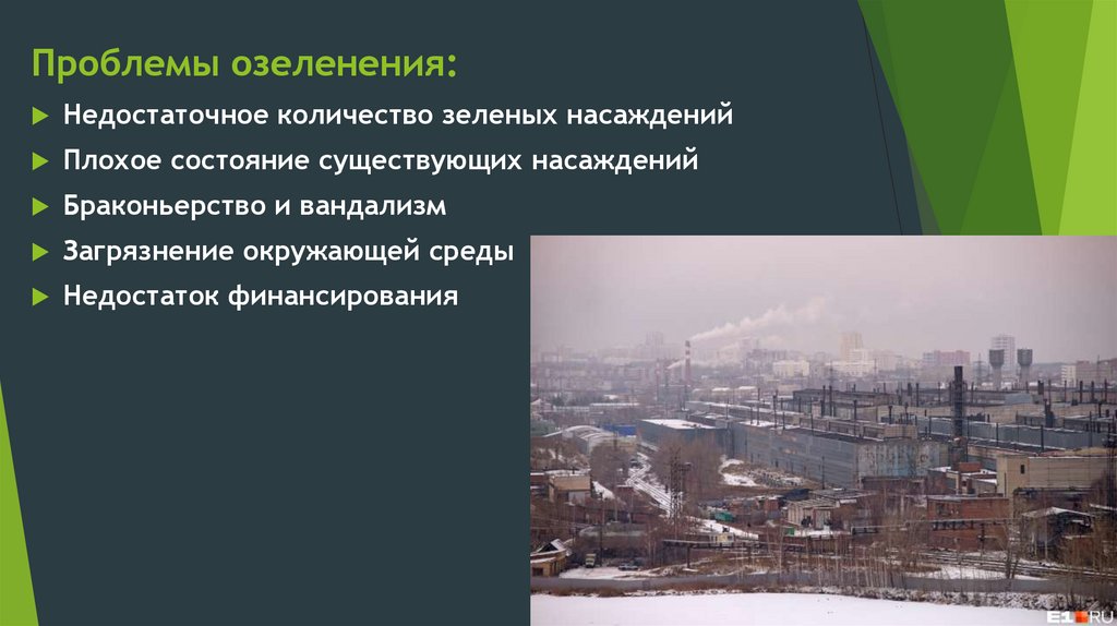 Недостаточное количество зеленых насажденийПлохое состояние существующих насаждений