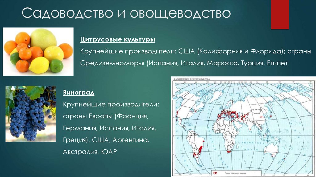 Цитрусовые культурыКрупнейшие производители: США (Калифорния и Флорида); страны
