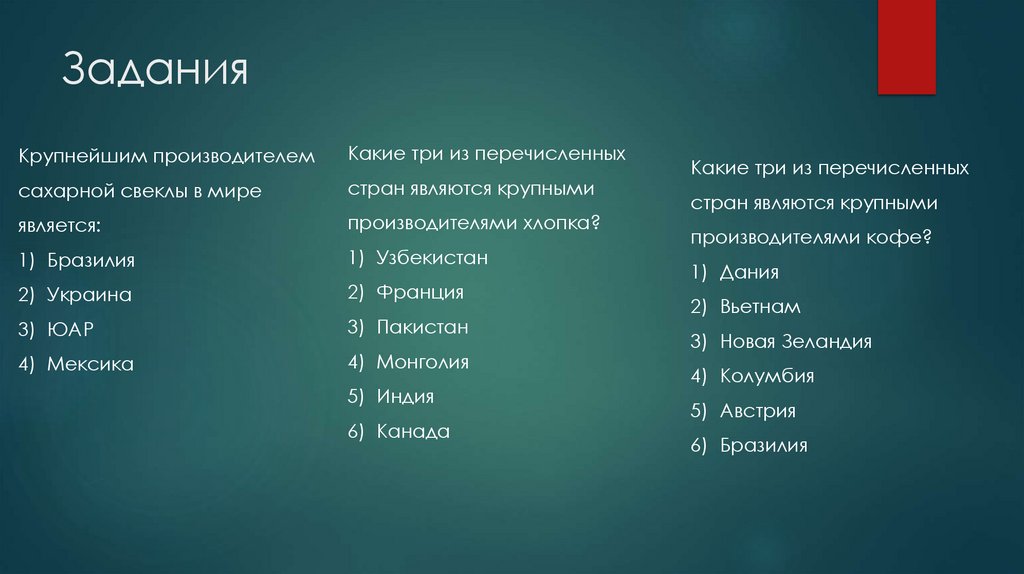 1. Сельское хозяйство мира (1 часть - Растениеводство)