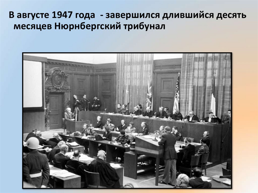 В августе 1947 года - завершился длившийся десятьмесяцев Нюрнбергский трибунал