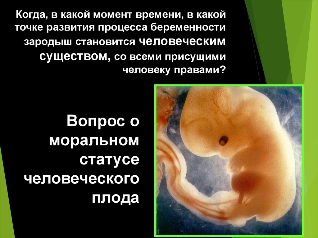 Особый онтологический статус эмбрионаопределяет и его особый моральный