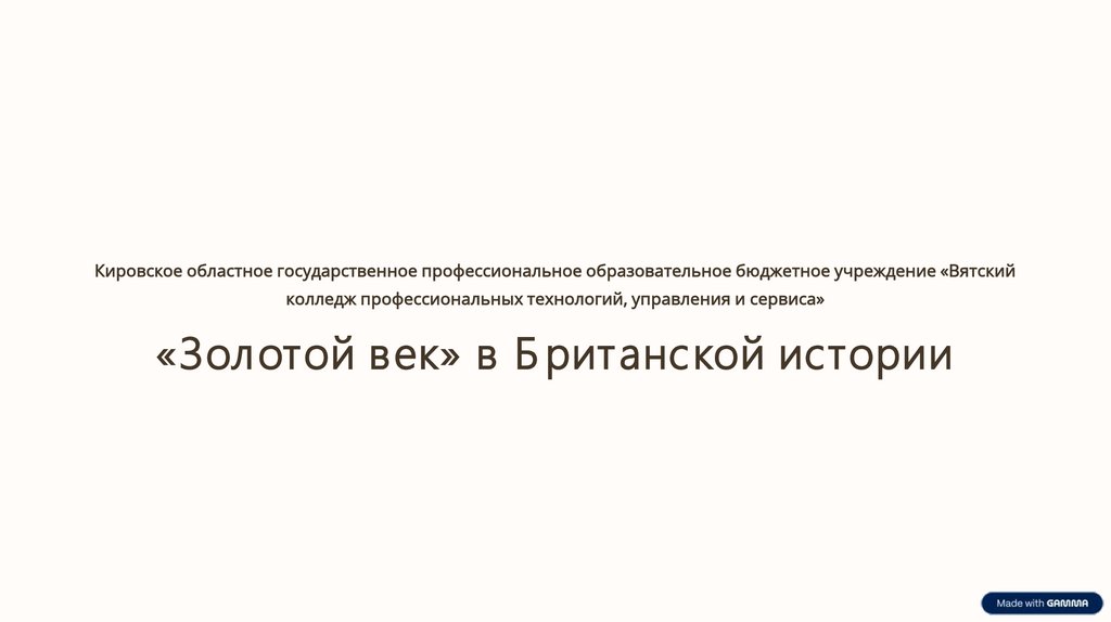 Цель проекта – Изготовление и оформление брошюры « Золотой век» в Британской истории1.Изучить специализированную и нормативную литературу, интернет-источники