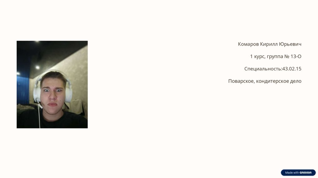 Комаров Кирилл Юрьевич1 курс, группа № 13-О
