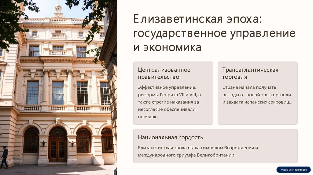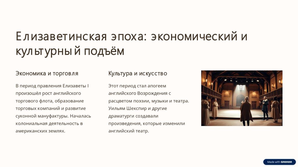 Актуальность проектаАктуальность проекта, посвященного елизаветинской эпохе, заключается в том, что этот период стал ключевым