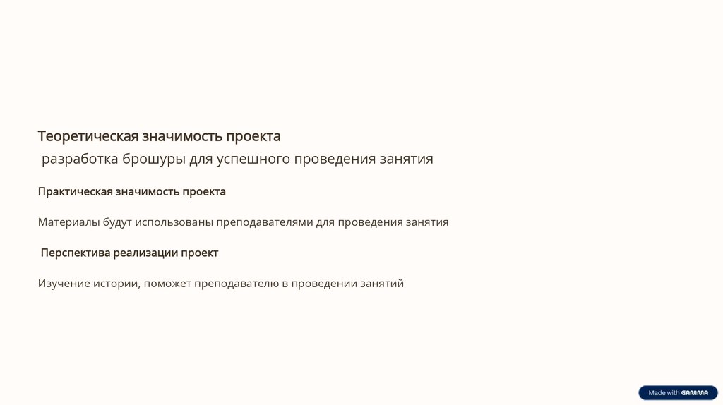 Теоретическая значимость проектаразработка брошуры для успешного проведения занятия