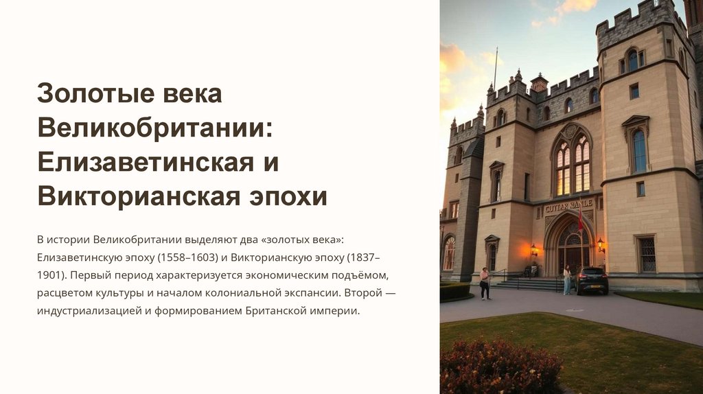 Елизаветинскую эпоху (1558–1603) и Викторианскую эпоху (1837–