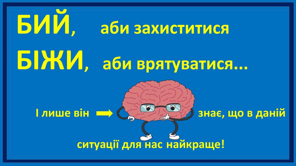 БИЙ, аби захиститисяБІЖИ, аби врятуватися...