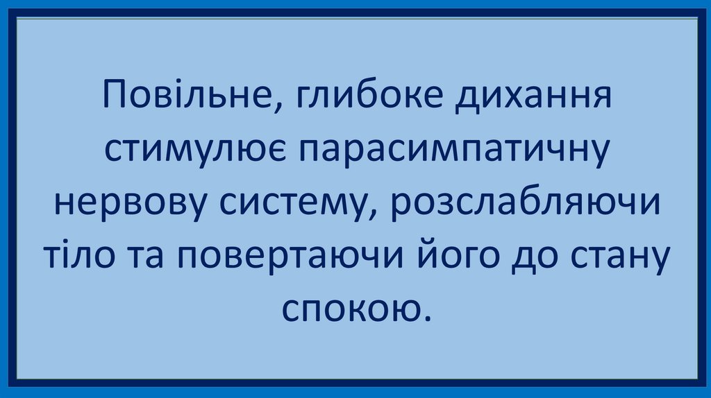 Повільне, глибоке диханнястимулює парасимпатичну