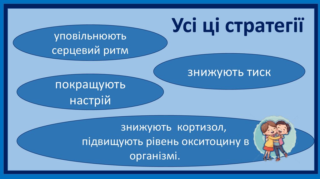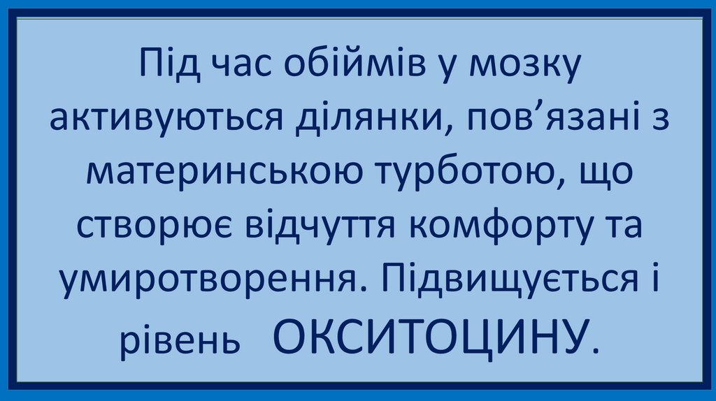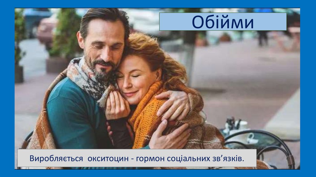 ОбіймиВиробляється окситоцин - гормон соціальних зв’язків.