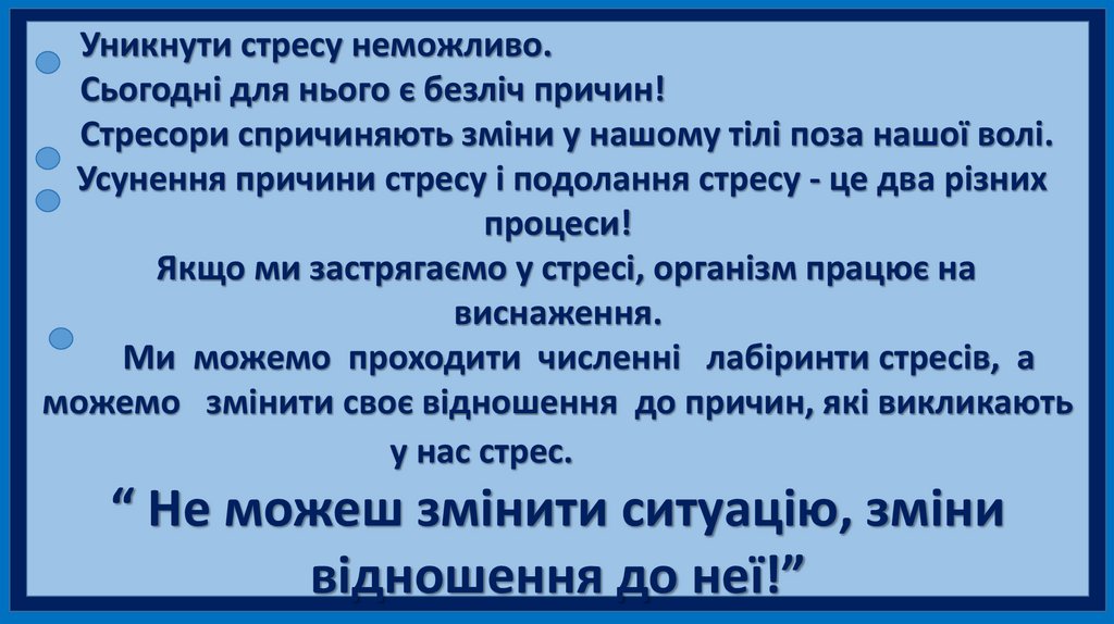 “ Не можеш змінити ситуацію, зміни
