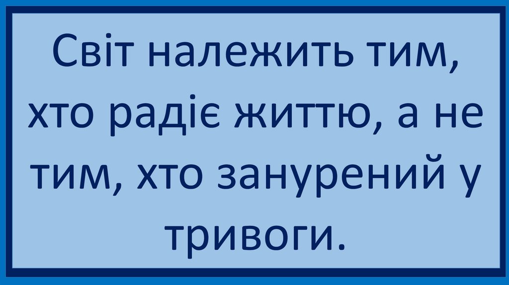 Світ належить тим,хто радіє життю, а не